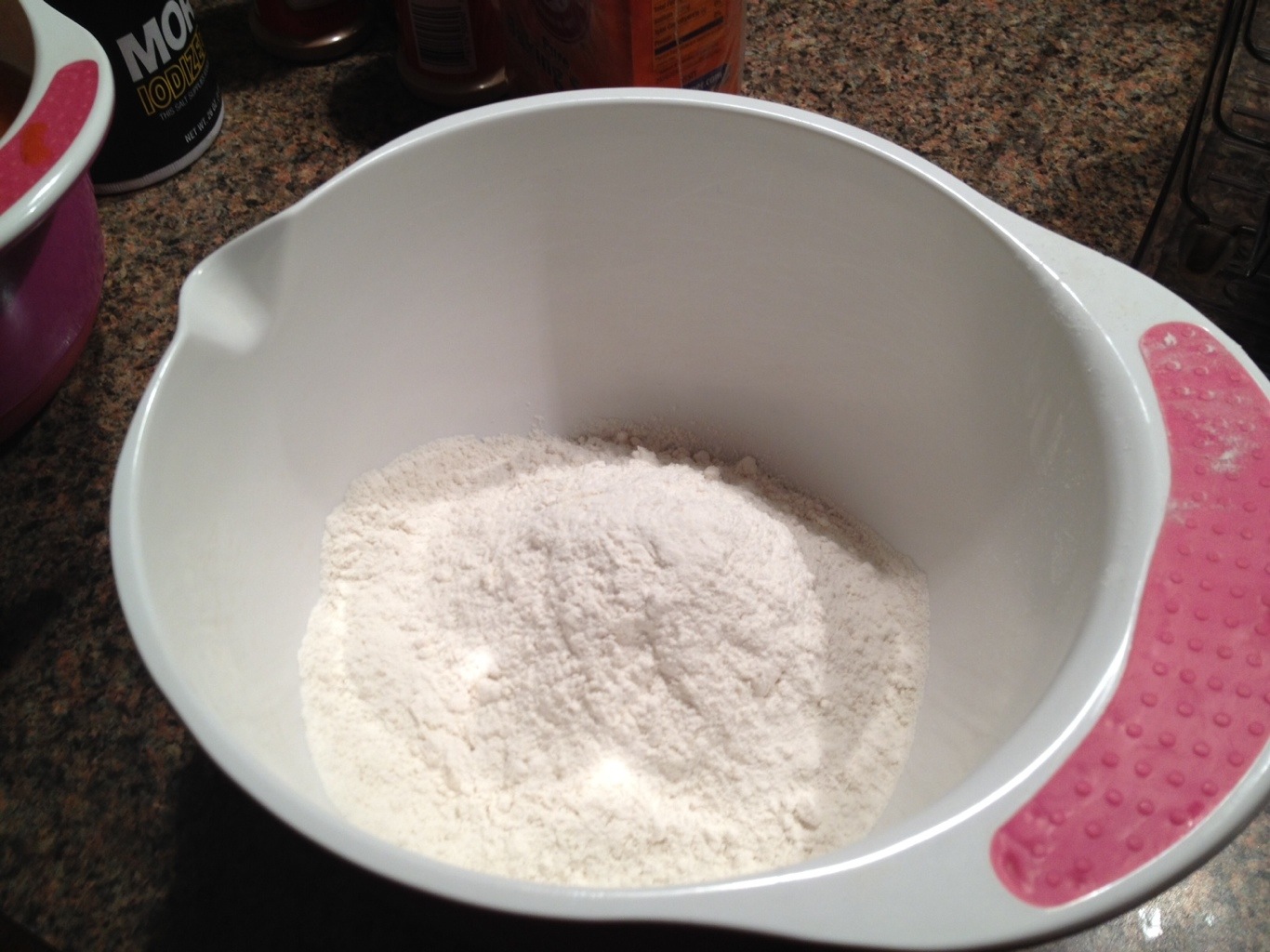 Flour your surface and rolling pin. Plop your dough on there, and flour the top of the dough as well. Begin to roll your dough out- a few rolls to the front, a few to the side. Work toward making that circle. Mine looked more like it fell off a tall building and splat on my counter, but it’s okay because you will trim the edges anyway. While rolling keep flouring the dough here and there.