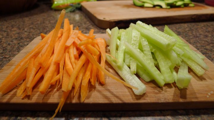 Summer rolls are one of my favorite things, I love everything about them- the vegetables, the thin noodles, the texture of the rice paper…and to be honest I could probably drink a glass of the dipping sauce that is usually served with them. I get an intense craving for them every once and a while and today was one of those days. I also happen to have the dipping sauce from Trader Joe’s that I love, so it was good timing to make them. Summer rolls are pretty easy when it comes to the ingredients because you can really use a lot of different vegetables, I usually try to get a few different colors so they look pretty when wrapped up together. I also love tossing in fresh basil or mint!