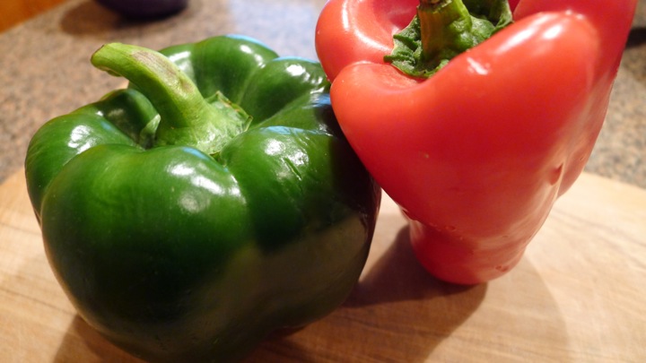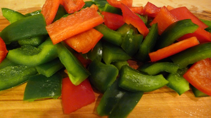 2 peppers (I did 1 red and 1 green), cut into 1 inch chunks