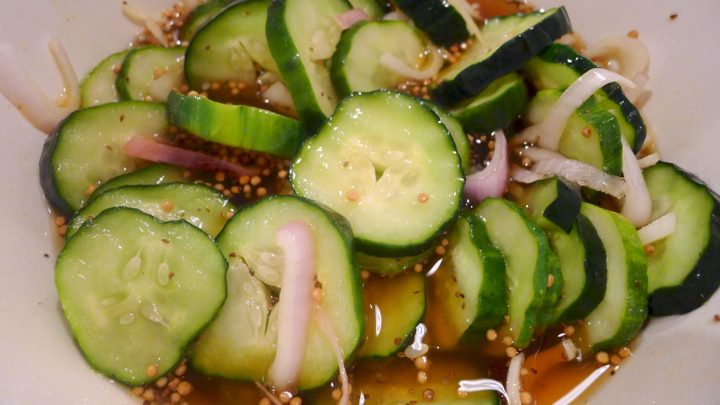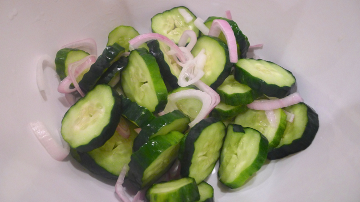 2 medium cucumbers, sliced (not too thin!)