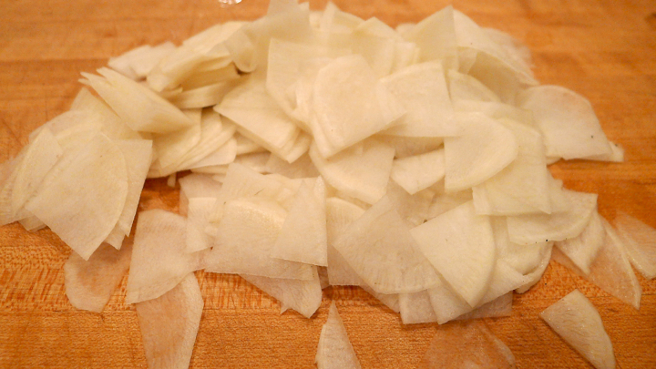 2 large black radishes, thinly sliced and cut into 1 inch pieces