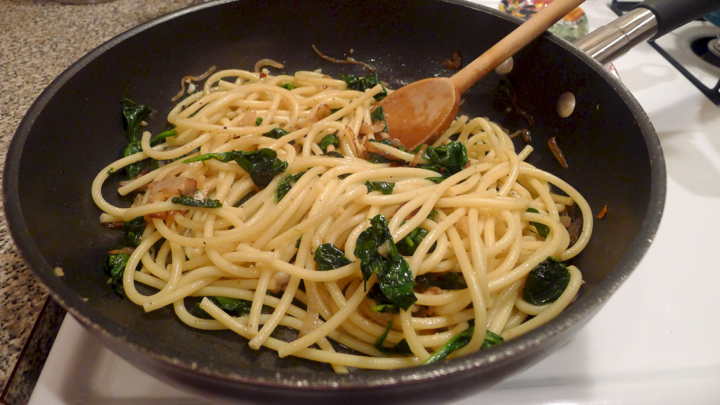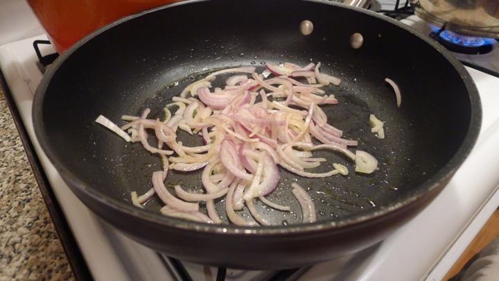 Last night my friend Meghan and I cooked another epic meal for the books. We did our usual “I’ll bring whatever I have, you bring what you have, and we’ll just make something up!” – which more often than not ends in some pretty delicious meals. There was a lot of wine, and a few hysterical rounds of drunken UNO after dinner. All in all it was a successful Wednesday night…