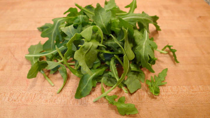 Preheat oven to 400 degrees. In a food processor, add the arugula, basil, garlic, Parmesan cheese, olive oil, and salt and pepper. Mix until you have the texture of pesto. Set aside. Next, cook the sliced potatoes in a pan with some olive oil until fork tender but still slightly firm.