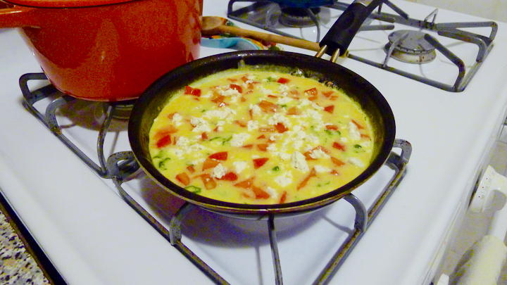 A typical nighty event for me is staring into my fridge (while starving) and trying to think of something delicious to make that won’t take too long. Luckily last night I had an easy solve – frittata! The great thing is you don’t need a crust for this, you can just sauté everything right in the pan, add the eggs and cheese, then pop it into the oven for about 10 minutes. It’s eggy magic.