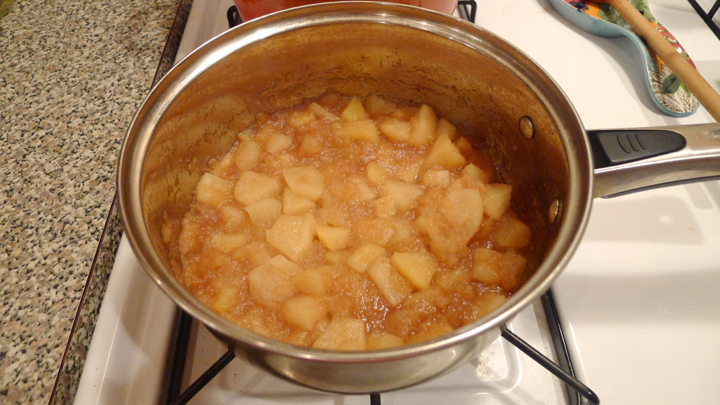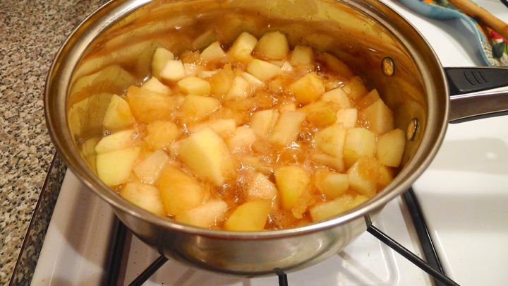 If making your own applesauce, simply place all the ingredients in a small saucepan and bring to a boil. Reduce the heat and let simmer for 20 minutes. Place in a food processor and blend until smooth. Set aside to cool. And try not to eat it all before the latkes are ready!