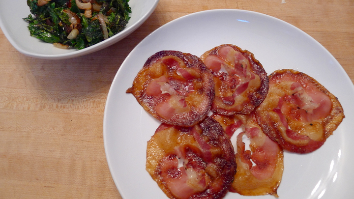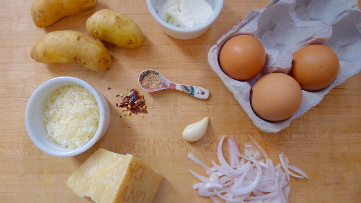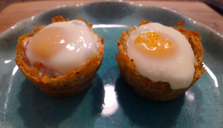 Boil the potatoes until slightly fork tender but still a little firm. You don’t want to overcook them or they’ll break up when you sauté them in the pan. Remove and set aside. In a small pan, sauté the shallot in some olive oil until softened, about 2 mins. Add the potatoes, paprika, salt and pepper. Cook for about 5 minutes, then toss in the mushrooms and green onion and continue cooking for another 5 mins – or until the potatoes are golden brown and the mushrooms are softened.