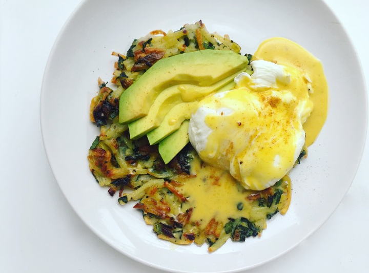 There’s not too many things I love more than Sunday breakfast. I just got back from a long trip in Puerto Rico, and before I left I was trying to use up everything in my fridge! I ended up making this on a whim and it was super delicious. The potatoes were crisp and mushrooms added a nice texture. And the egg with the hollandaise brought it alllll together. Sometimes the best meals are made with the random ingredients you have in the fridge!