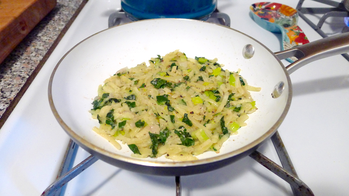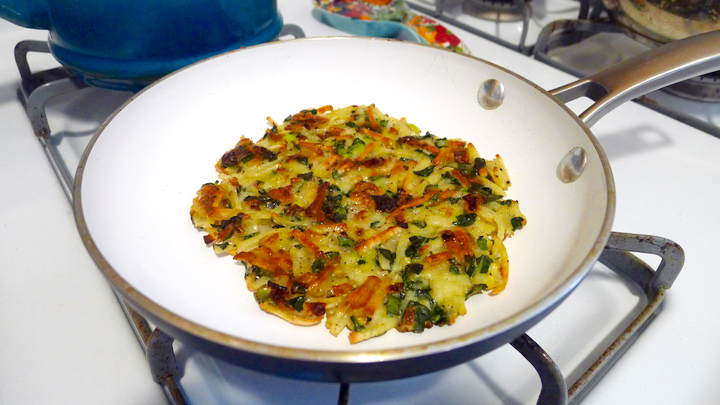 To assemble, plate the hash and top with the egg and hollandaise sauce! I had some asparagus around as well, so I shaved that and quickly blanched it for about 30 seconds in the hot water then sprinkled with rice wine vinegar and a crack of pepper to eat on the side.