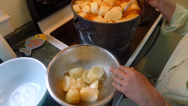 This weekend we went home to Rhode Island for Mother’s Day. My mom was making Portuguese boiled dinner, which she has been making my whole life- it is one of those sentimental meals that I love very much. She learned how to make it from my great-grandmother, and yesterday she taught me how to make it. I have documented it here to share with you all! It is quite simple, but does take a few hours of cooking time. Well worth it though. And what’s even better is the next day you chop up all the leftovers and make hash out of it- which I have also included in this post for you as well!