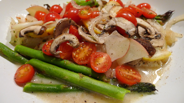 Pre-heat oven to 400 degrees. Chop all of your vegetables, potatoes, and fresh herbs so they are ready to go. Also have your dough thawing now if you haven’t started this already.