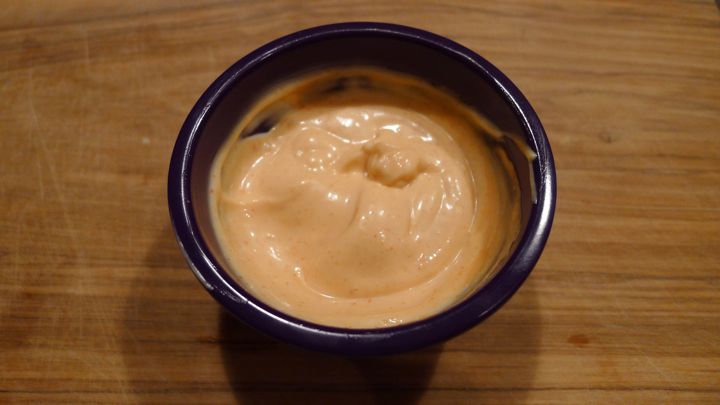To make the spicy mayo, simply add the mayo, sriracha, and lemon juice in a small bowl and mix well. Now assemble your tacos! Place a little spicy mayo on the tortilla, add some fish, then top with the slaw. Enjoy!