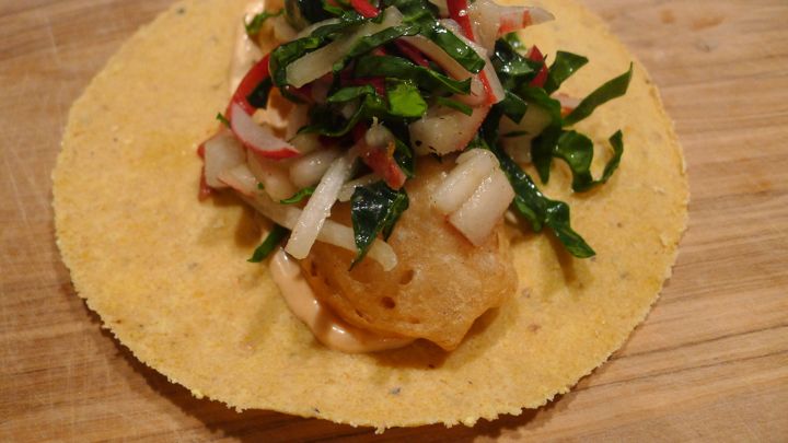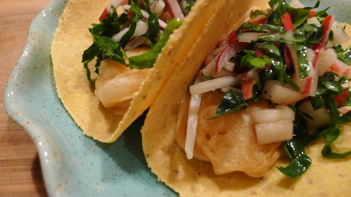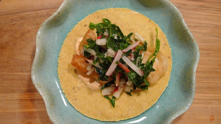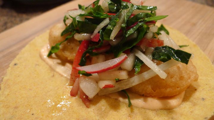 Fish tacos are one of my favorite things. I could easily eat 10 of them at Rockaway Taco in the summer time, I don’t care how long the line is! Frying fish isn’t something I do often, but if you’re going to make a fish taco I think it’s definitely the way to go. The toppings are key too, so in this recipe I made a quick and easy slaw with some spicy mayo as well.