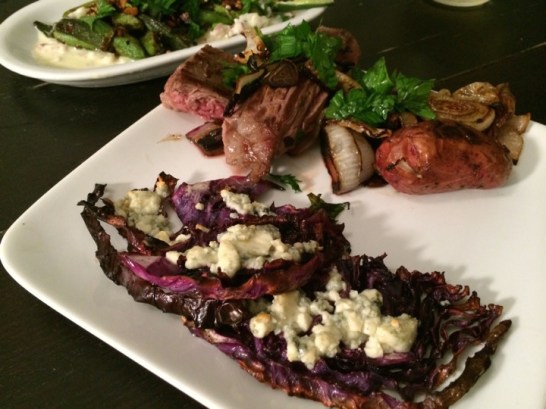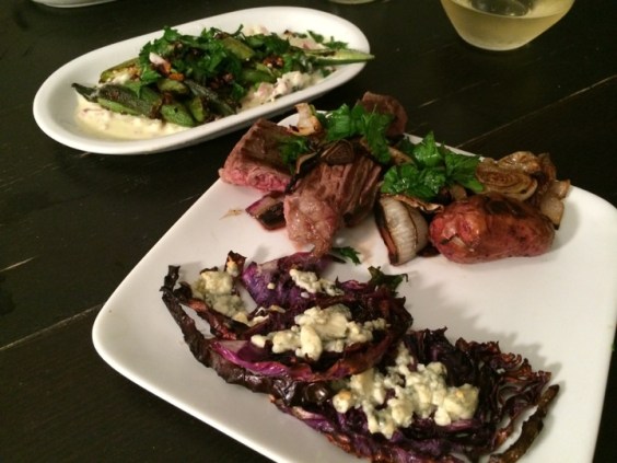 Last night I gathered all my items from this weeks CSA bag and headed to my friends house. We decided to make a few pizzas to have with our bottle bottles of wine. The first pizza had more of a southern style, with okra, shallots, and fresh heirloom tomatoes. The other pizza was made with these AMAZING beet and pork sausages that Meghan got from The Meat Hook. The sausage was so good we decided to just add some onions and cheese and let it shine on its own. Both came out amazing! To save us time, I bought the dough from a local pizza shop in the neighborhood for a few bucks. Thanks Meghan and Daniel for having me over for the 700th time this year!