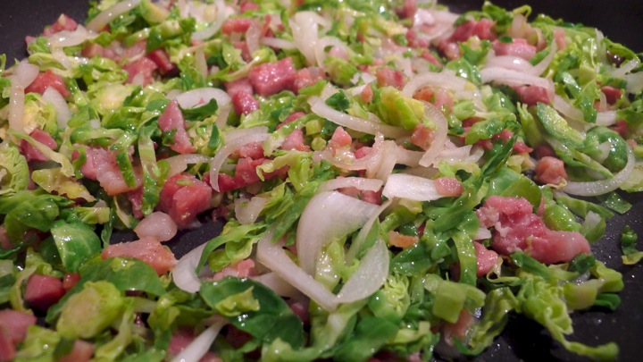 To poach the eggs, boil some water in a medium sized pot. Add about a teaspoon of apple cider vinegar (helps make them fluffy) and swirl the water with a spoon to get a little whirlpool going before pouring the eggs in one at a time. Cook for about :30-:45 seconds before removing them with a slotted spoon. I usually lift them slightly out of the pot and gently poke the centers until it feels a little firm but runny in the center.