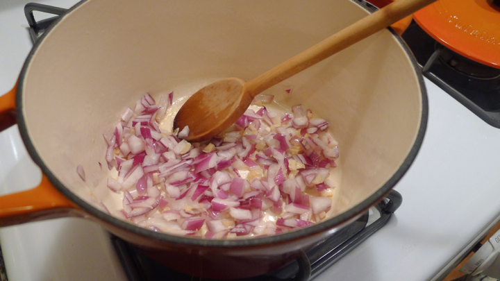 For the cauliflower “rice,” you can either buy this already made (Whole Foods has fresh and frozen options) or you can make it yourself by simply pulsing regular cauliflower florets in your food processor until it resembles a rice texture. Start by sautéing the shallot and kimchi together over medium heat with a tiny bit of olive oil, cooking about 1-2 minutes until softened. Add the cauliflower rice and some fresh pepper (I skipped the salt seeing the kimchi is a little salty) and cook about 5-7 more minutes until the cauliflower is cooked through.