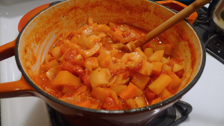 Half small eggplant, cut into 1/2 inch chunks
